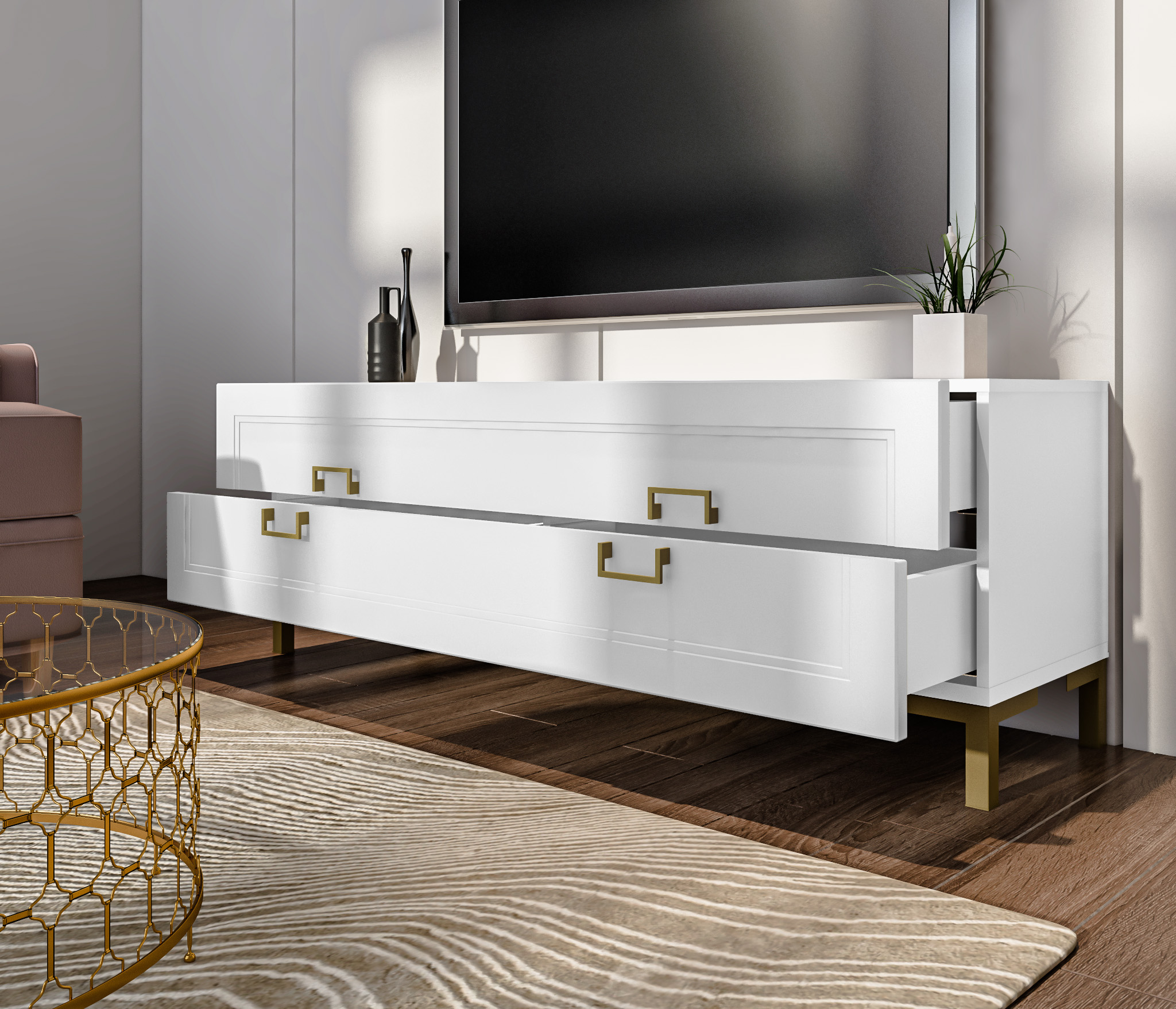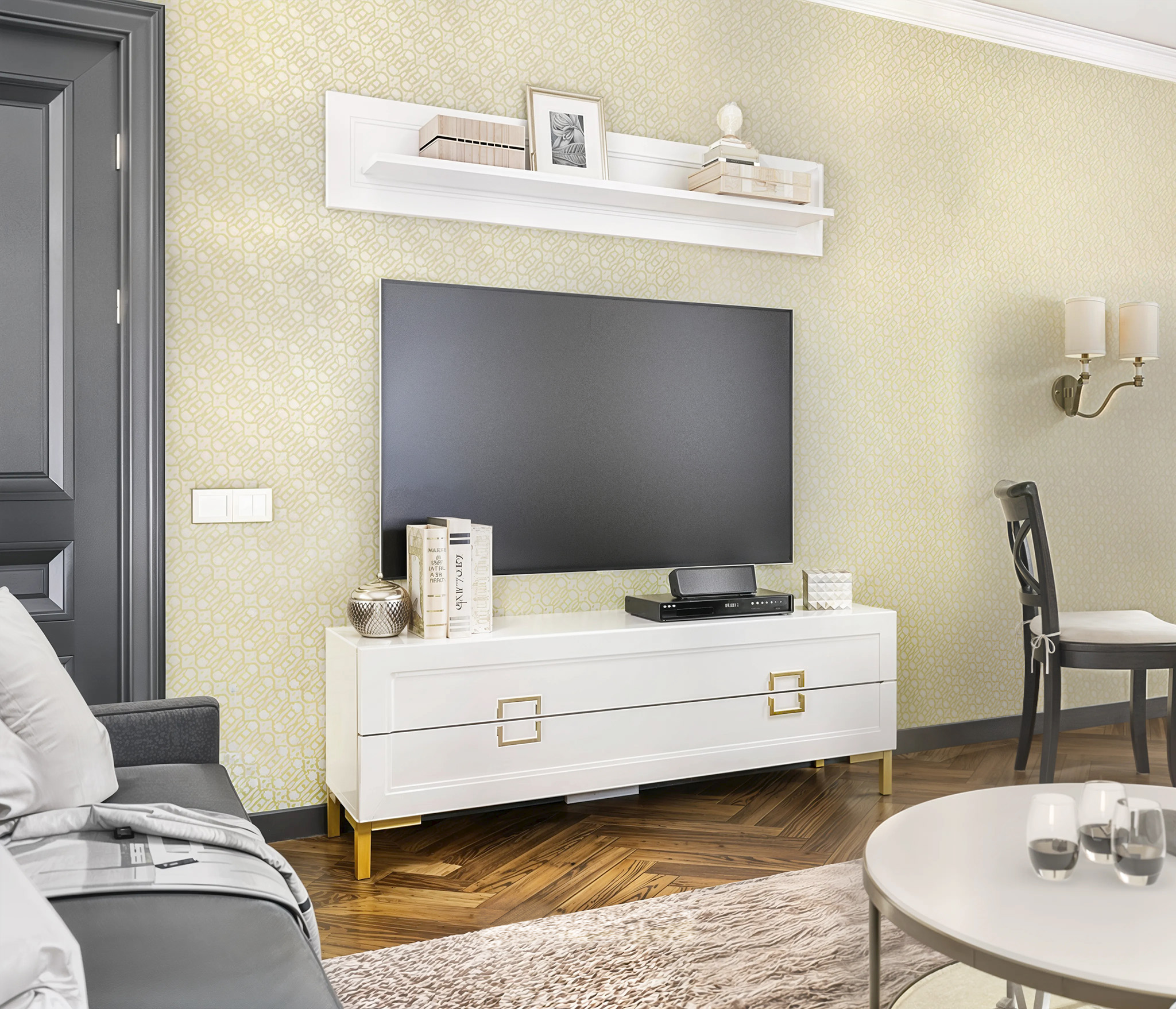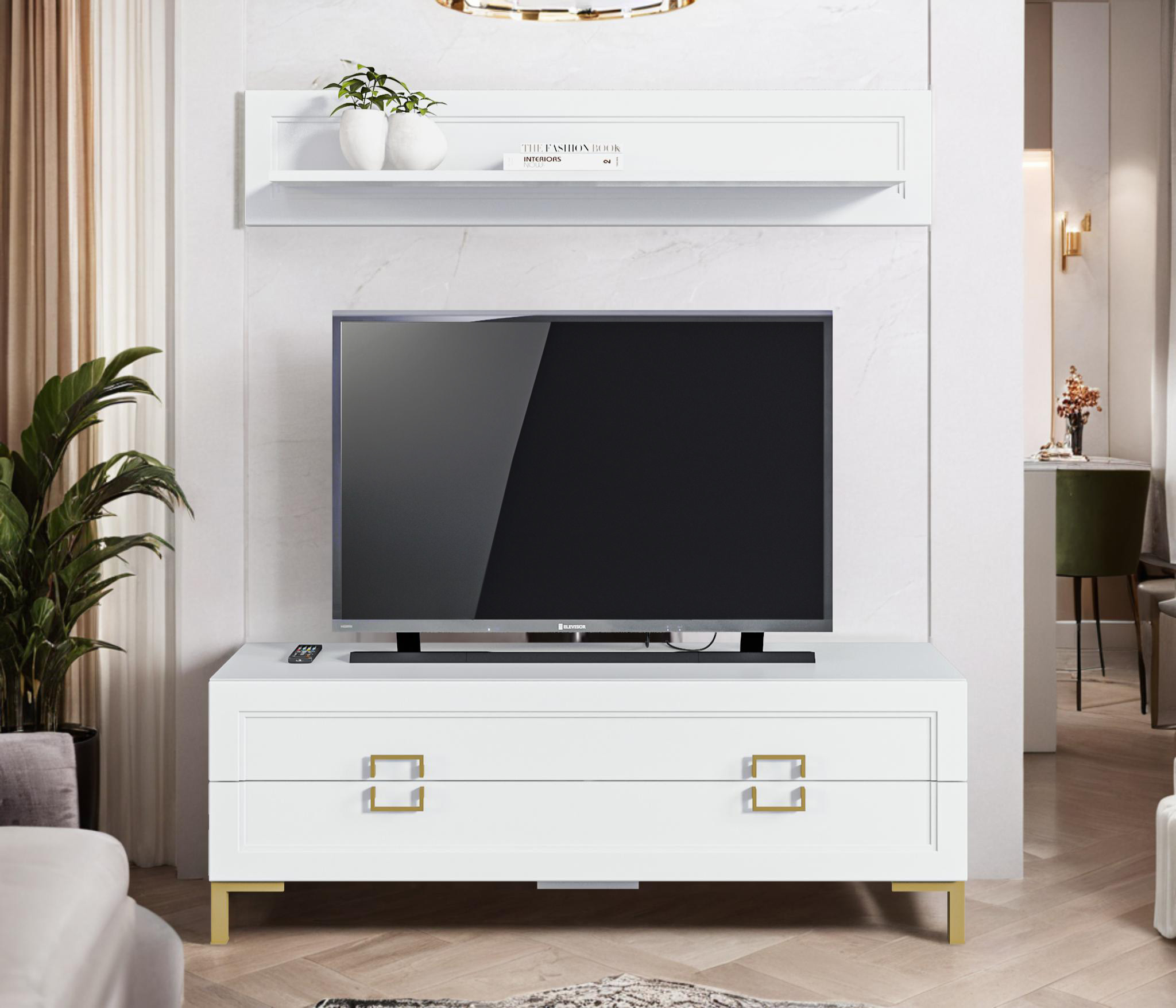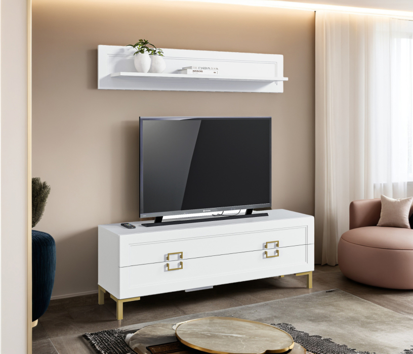 Комплект для гостиной, тумба ТВ и полка, Белый Код 00000336483